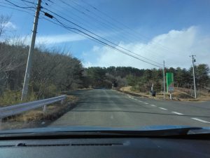 途中の道路状況:路面は日陰部分で圧雪・凍結です。運転には注意が必要です。スタッドレスタイヤ、チェーンの準備をお願いします。